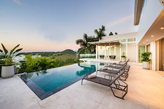 Villa Borimas overlooks the tropical and rugged landscape of the magnificent Andaman Sea. Located within the private Surin Heights Estate, sunsets here are bewitching, and the hillside setting offers a peaceful retreat. Surin Beach is just a few minutes’ walk for a swim, a Thai massage on the sand, or delicious fresh seafood dishes at one of the local Thai restaurants. For something classier and for a change of scene from your stunning villa, you may dine at the beachfront restaurant of The Surin. Stop by Surin Plaza, home to several exclusive boutiques, or indulge in a luxurious tropical spa day at Twinpalms ‘Palm Spa’. Phuket International Airport is just 25 km from the villa and usually takes 30 minutes by car.